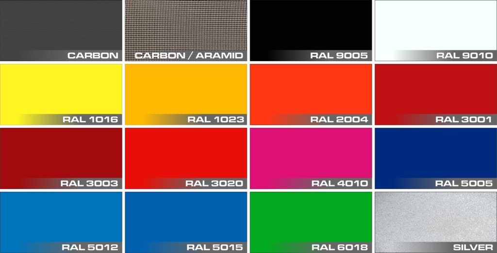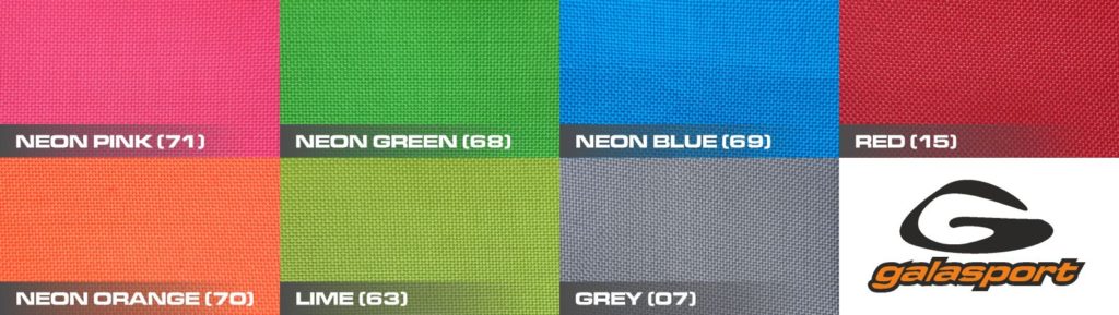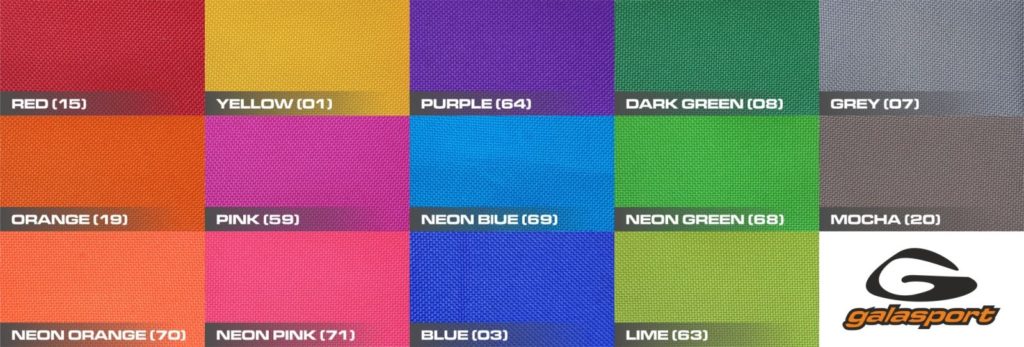 galasportのボート、ボートバック、パドルバックのカラーサンプルです。ボートは混合色も選択可能です。